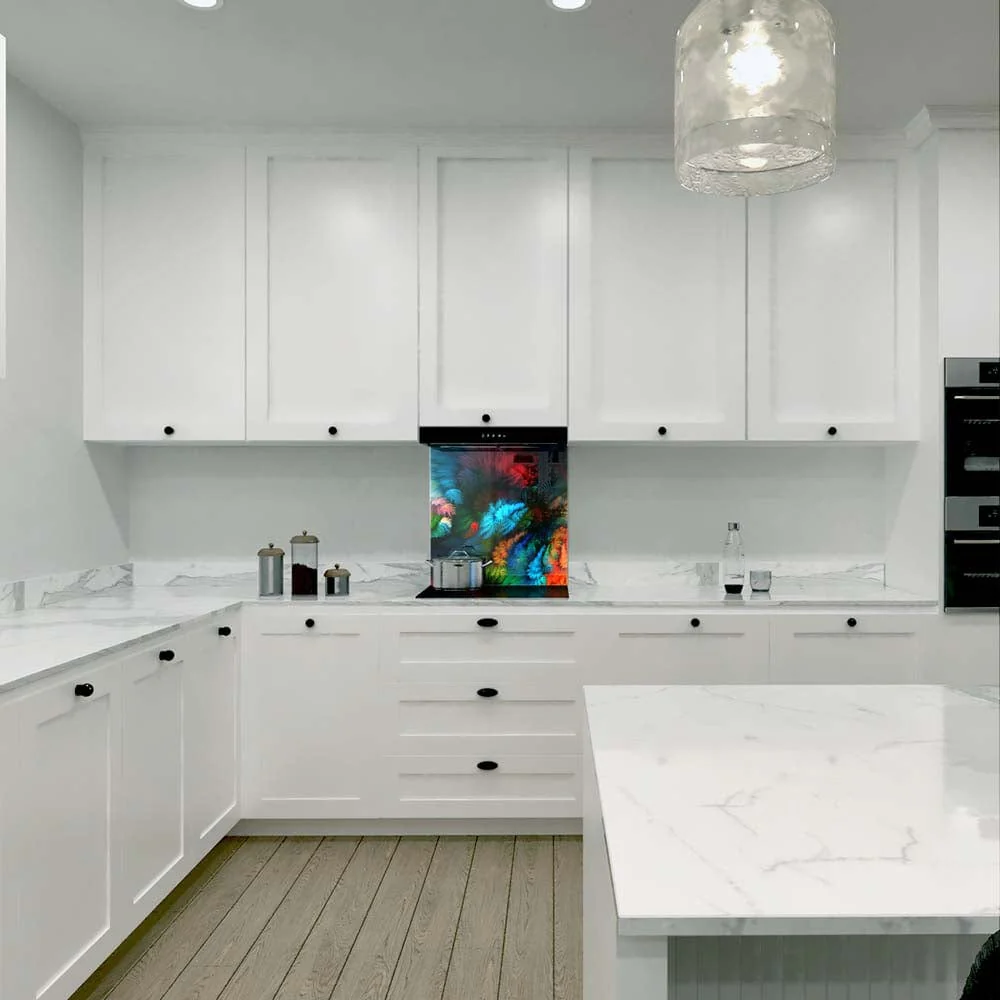 Abstract designs are a fantastic option for adding a modern touch to your kitchen. They blend seamlessly with any existing color scheme, enhancing the overall aesthetic. These designs can be customized to suit your preferences, making them a versatile choice for kitchen decor. Whether you prefer bold, eye-catching patterns or subtle, understated designs, abstract glass splashbacks can transform your kitchen into a stylish and contemporary space. Their reflective surface also helps to create the illusion of a larger, more open kitchen. With their durable and easy-to-clean properties, abstract glass splashbacks are a practical and stylish choice for any kitchen.