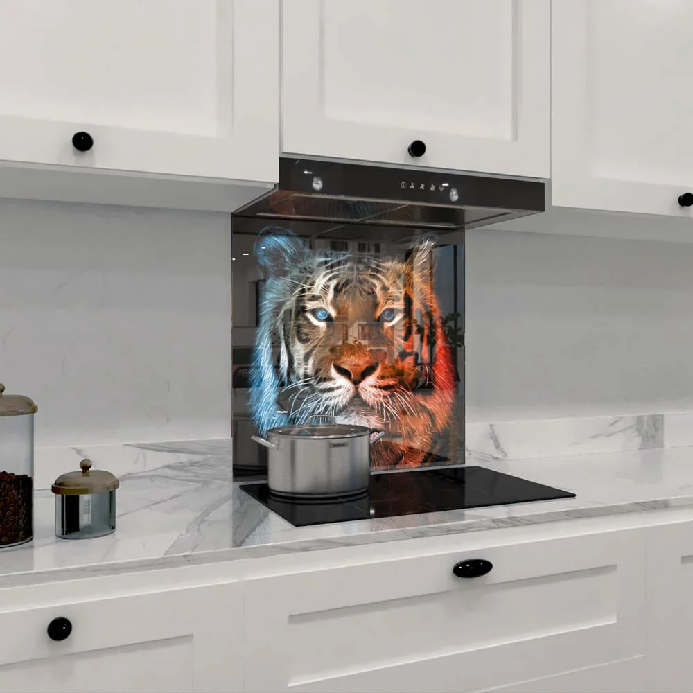 Fire and Ice Tiger Printed Glass Splashback - DIY