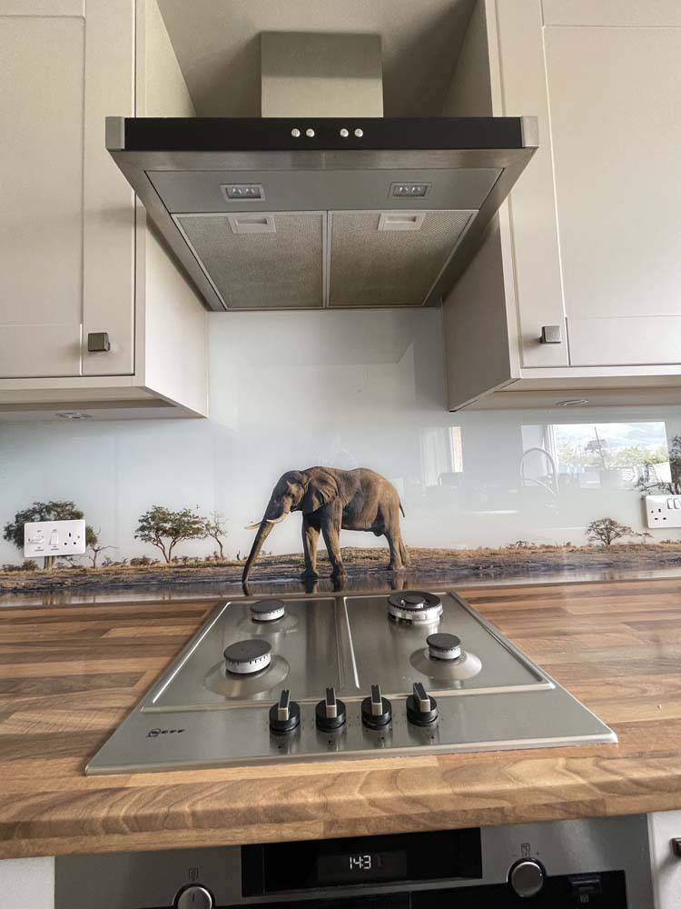 Grey Elephant in Safari Printed Glass Kitchen Splashback - Bespoke