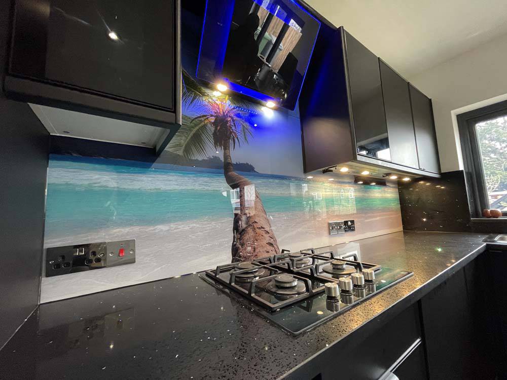 Palm Tree Beach Printed Glass Kitchen Splashback - Bespoke
